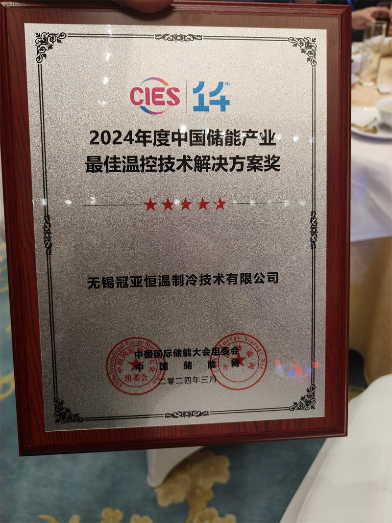 熱烈祝賀 | 冠亞制冷榮獲2024年度中國(guó)儲(chǔ)能產(chǎn)業(yè)zui佳溫控技術(shù)解決方案獎(jiǎng)